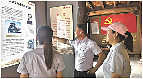 我们先后参观了“红色印迹”武义中共党史展,原中央纪律检查委员会委员、常委、副书记刘锡荣题写的“红军精神万岁”悬挂在礼堂上方,窗户两旁墙体上分别写着“当红军最光荣”、“红军是工农的武装”的醒目标语,红色印迹详细介绍了1947年浙东人民解放军第六支队在队长应飞带领下在武义开展革命斗争的故事、1948年武义武工队在陶健队长带领下开展革命斗争的故事等12个红色印迹。